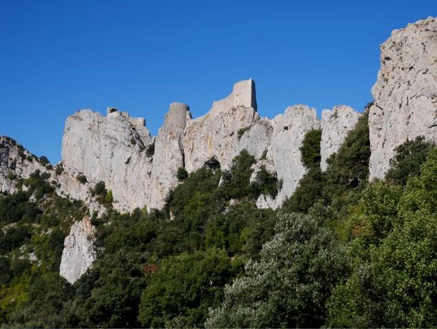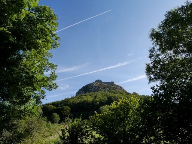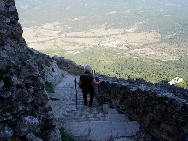 My American friends were crazy about the Cathar castles. They had read all about these castles at home and wanted to visit as many as possible. Even when I explained that they were not Cathar castles at all, but castles built by local warlords, that did not dim their enthusiasm for a minute. Only the Montsegur was especially fortified for the Cathars. So here we went, three castles in a day. First Peyrepertuse, then Queribus and finally Puilaurens. And the next day Montsegur. Very good form y condition!