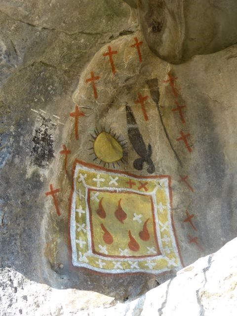 In the far west, a 90 minutes drive from Rennes-le-Chateau, is a lot to be seen. Especially in and around the cities of Foix and Tarascon-sur-Ariege. There is the Grail castle Mont-Real-de-Sos, wit hits famous Grail drawing and its magnificent view on the high Pyrenees. And lizards everywhere. There is the stone of Sem. There is the beautiful chapel of the ND de Sabart where we were allowed to have a look in the sacristy, where often are kept the real treasures of the church, such as this plate of the Last Supper. There are the two famous caves the Cave de Lombrives, the largest cave in Europe and the Cave of Niaux with its famous rock drawings from 15.000 years ago. There are the initiation cave of the Cathars in Ussat-les-Bains. Well known to my readers. With here a nice ‘selfie’ portrait in the Bethlehem cave. And then there is Foix, with its church and castle and 15 km’s to the northwest the village of Baulou, wit hits famous, hidden caves of Jesus and Mary Magdalene. And on the way back the rock church of Vals, built on an ancient burial site of the Druids and the beautiful Cathedral of Mirepoix.