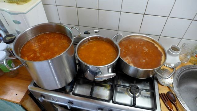 Nature is so free and so giving. So abundant. Her fruits are plentiful. And I have to make use of it. What nature has produced cannot be neglected. It must be received in gratitude. And treated with care and respect. So we collected dozens of kilos of Mirabelle’s. And about as many of those little red prunes. We bought special glasses, special sugar, other fruits like apricots and peaches, all to make comfiture. It took me days and it was wonderful. Now we have enough comfiture for the winter. And lots of jars to give away. But as you know, everything that grows on you own land, helped by your love and attention, is healthy. Is good for you. See pic’s 007 - 009