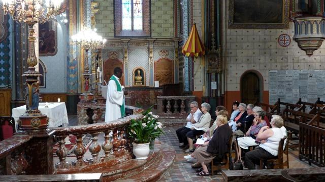 The first place to visit, and it is always something very special, is the Labyrinth of Nebias. It is not really a labyrinth but a maze. We followed the Camie Salvatge, indicated by the read hand. Then past the Chateau of Puivert and the fountain of Fontestorbes to the Montsegur. We were happy that we did not climb the mountain for 10 minutes later the rain started to pour down. Massive sheets of water descended on the holy mountain. As if to purify it. We went on to Foix and from there to the monastery of Carol in Baulou. With the two very strange statues. One of Jesus in one cave and one of Mary Magdalene in the other cave. With others I went to the initiation caves of the Cathars. To the cave of Bethlehem with Reint and Gabriela and to the Eglise and Hermit Cave with others. Always, if possible we visit the small chapel of Sabart in Tarascon-sur-Ariege with the beautiful Black Madonna. On the way back we look at the famous Rock Church of Vals and at the lovely and lively city of Mirepoix with its Cathedral of St Maurice and its sculptured wooden beams. See pic’s 074 – 085.