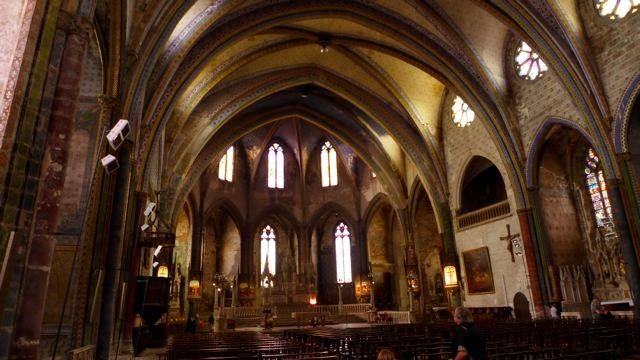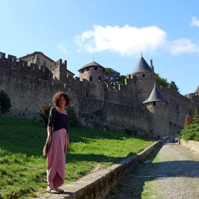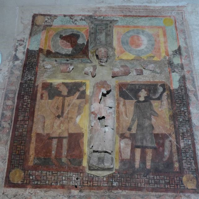 First of all there is the city of Limoux. Know for its delicious Blanquette de Limoux and its Carnival. And the church of St Martin with its enigmatic stained glass windows. And the ND de Marceille with its healing well (for the eyes). And nearby the abbey of Polycarpe, with its fresco’s, its beautiful portrait of the three Mary’s and its stations of the cross in a very bad state. Further north is the fully renovated abbey of St Hilaire. Then we come to Carcassonne, a UNESCO World Heritage Site. With the Cite, with Madame Carcas, with the castle and the basilica. And in the town on the west side of the River Aude, the canal du Midi, the lovely Chapelle de Carmes with a statue and fresco of the weeping ND de Salette and the enigmatic church of St Vincent, with a painting of the Last Supper with clearly a woman next to Jesus and a statue of a pregnant Mary Magdalene. There is much more to be seen in the north but we now take a turn to the northeast. To Caunes Minervois. And the lovely church of ND du Cros, with its Black Madonna, its statue of the reinstated Judas, its sacred well where we saw Orbs flying over the water, its lovely pick-nick place and its rocks full of red marble. Further on we have the dolmen de Fades. Where this time they had added three strange balls located to the south of the dolmen. And finally Minerve, with its huge bridge, its underground river and its dove, carved out of the rock. See pic’s 40 – 62.