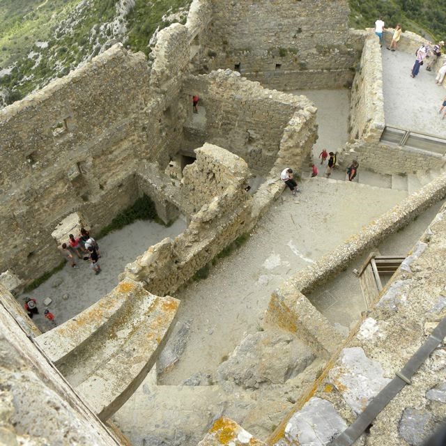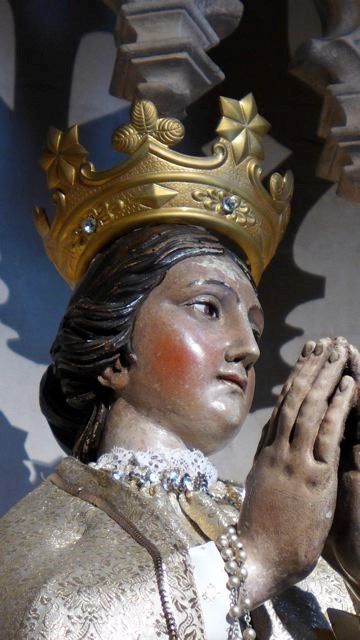 To the east we find the magnificent, male mountain the Bugarach. Further east are the famous Gorges de Galamus with this heart carved out of the River Agly, with the monastery of St Antoine, the Cave of Mary Magdalene with its wonderful wooden statue and the church built into the rock. Then St Paul de Fenouillet, with its love little square, so typical French. Turning left at Maury we go to the Castle of Queribus and then to the town of Cucugnan. With its great restaurants, it’s Mill of Omer and the church with the pregnant Mary. See pic’s 063 – 066.