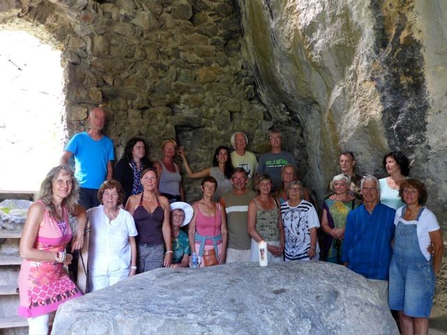 It is always a pleasure to welcome Reint and Gabriela at our place. This year they came for the tenth time. With a large group. They always come around the name day or feast day of Mary Magdalene. On July 22nd. Celebrating this event in the cave of Mary Magdalene. In the morning they have their training programs and in the afternoon we go to special places. Like the Cave of Bethlehem, one of the initiation caves of the Cathars. Or to the Montsegur, or to Rennes-le-Chateau. It is wonderful to see them sitting in the garden, in a large circle, talking to each other. Or to celebrate what they call a ‘wild evening.’ Where every-one can show his or her special talents to the group. Great stuff! See pic’s 111 - 116