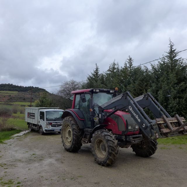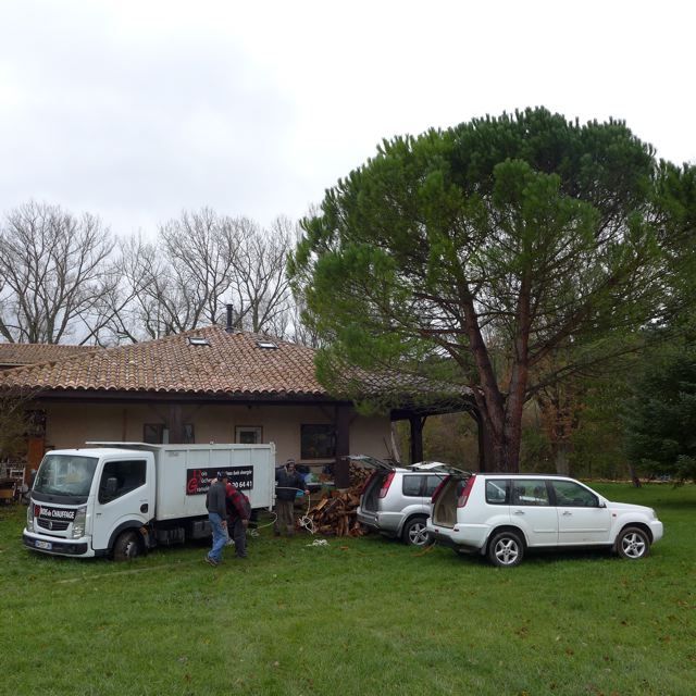 There is always something going on at our domain. The eyes of the Financial World, the Spirit World and the Practical World all seem to be on us. This time the truck bringing firewood for Joke’s and my wood burners got stuck in the grass. {PIC 10}. Ankle deep or axel deep {PIC 11}. Franklin and I tried to get the truck out. Using the combined power of both our Nissan X-trails. But to no avail. We had to call for a tractor from La Maurine to pull out the truck {PIC 12}.