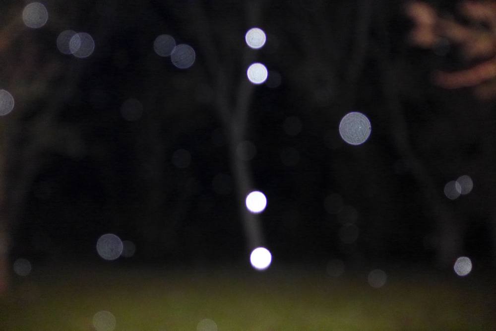 Stofdeeltjes voor de lens dan. Wel allereerst is het heel moeilijk voor camera’s, camera’s met automatische focus, om zich te focussen op deeltjes die zich op of vlak voor de lens bevinden. Maar ik heb ook Orbs gefotografeerd die duidelijk niet voor de lens zaten, maar achter een tak, een flink eind weg van de lens. Orbs en shooters. Sommige critici beweren dat als je een handje stof in de lucht gooit en dan snel een paar foto’s neemt, je allemaal Orbs zult zien. Nou probeer het maar. Ik heb het een aantal keren gedaan, maar ik heb geen Orb gezien.