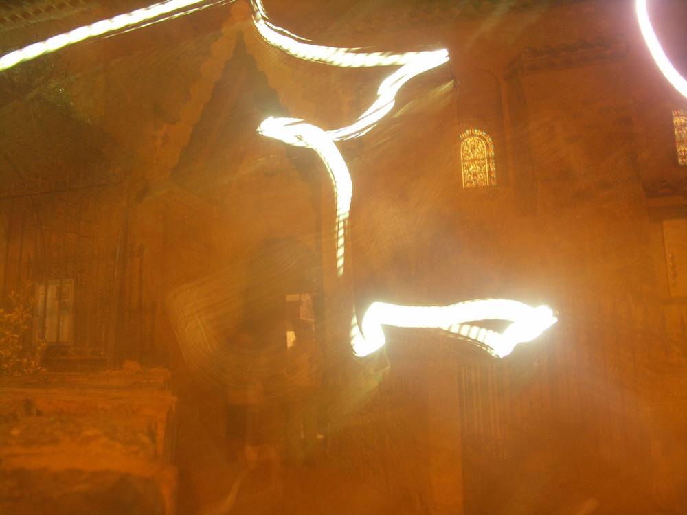 Nagemaakte Orbs dan. Orbs zouden gemakkelijk nagemaakt kunnen worden. Met laserstralen bijvoorbeeld. Wel ik geef het u te doen. Probeer de plaatjes met de Orbs die zich tijdens hevig onweer vertonen, maar eens na te maken. Ik heb een keer geprobeerd om een Orb na te maken. En het lukte. Met de foto van Jezus met een licht bol boven zijn hoofd. Maar dat was de weerspiegeling van een rond kerkraam boven de ingang van de kerk, recht tegenover het schilderij van Jezus. En u ziet, een leuk plaatje, maar er zit geen structuur in de bol.