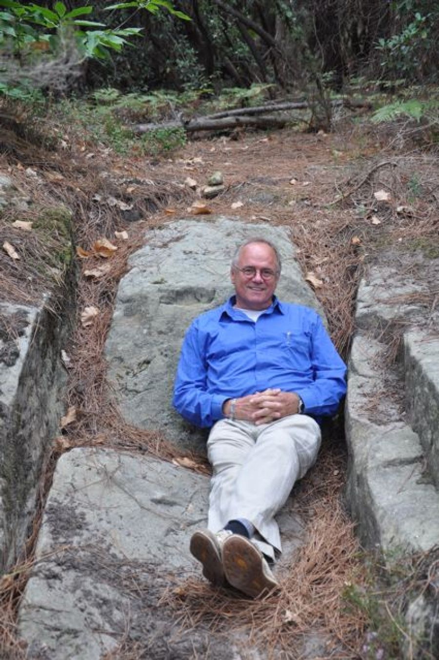Let’s continue with our favourites places, places that have been visited during the past month. Sometimes more than once. Baulou, just 10 kilometers north west of Foix, is such a place. Here, in the 19th century, a monastery was built, the monastery of Carol. On a beautiful spot between gently sloping hills {PIC 17}. When the people who built the monastery passed away and few people lived there, the property was acquired by the bishop of Pamiers. In 1956 the property was sold, under the express condition that everything ‘religious’ must be destroyed. Nobody knows why. Maybe because the monastery was considered, by the Church, to be a bit heretical, like the church in Rennes-le-Château. Anyway the whole monastery was destroyed. Only one place was spared. A cave, some 100 metres away from the monastery, with the statue of Mary Magdalene. A beautiful statue {PIC 18}. Not many people go there, it is private property and the place is hard to find. But all who went to that cave, were very emotional. Because of the beautiful statue, because of the strange story, because of the energy of the place. I don’t know why, but it is wonderful to see the reactions of the people when they enter the cave. “Oh my God” is what I hear most. Here my American friends Keryn and Becky keeping Mary Magdalene company for a while {PIC 19}. And my other American friends Lisa and Kathy, keeping me company for a very short while {PIC 20}.