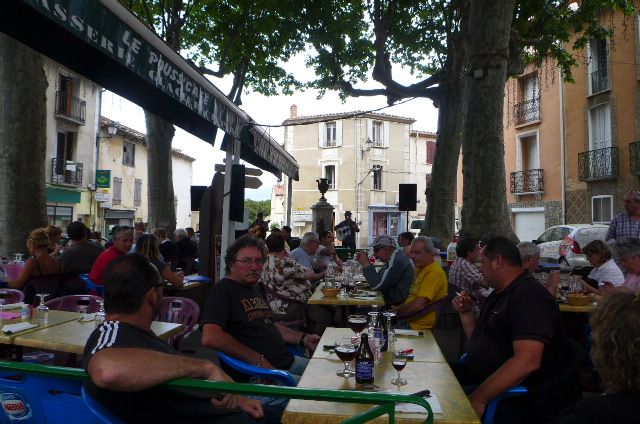 Monday, June 9. First taking two groups of people to the Railway station in Carcassonne. Then with Lorena a private tour. First to the ND de Marceille in Limoux, then to Bugarach and to the lovely church of Cubieres. Then again through the Gorges de Galamus to St Paul de Fenouillet. Where we had lunch while a Spanish group was playing! What a great place to be. A little while back, through Cucugnasn to the Fountain we missed, the fountain in Duihlac s/Peyrepertuse where you become amourous if you drink the water. It didn’t stop Lorena! Then on to the cave of Perillos, near the Mediterranean Sea. With wonderful plants. And at the castle of Opoul we could actyally see the sea! A 30-minute walk. To the cave. A small wonder. The shapes, the colours, the light. And then driving back to Les Labadous, about 80 minutes. See {PIC’s 77 – 84}.