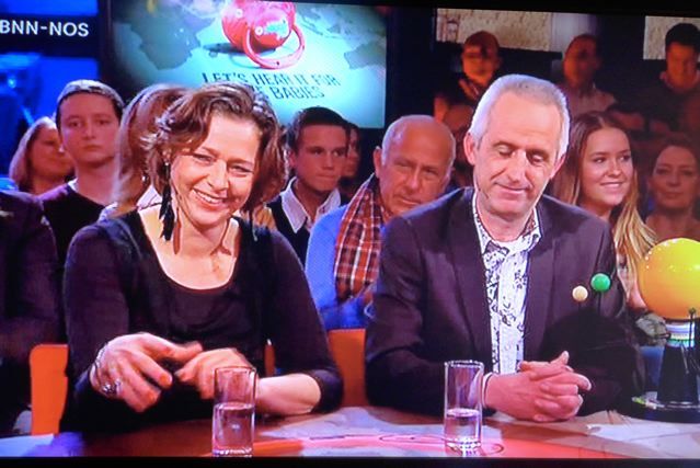 A little later, on RTL 4 News, I was the owner of a B&B, saying roughly the same. Then, at about the same time, my daughter Femke was live on TV. She was in a very popular program of BNN, called Serious Request. She was invited to come to Enschede, obviously because she had lived in Bugarach and had just returned to Holland. So she could not be a believer otherwise she would never have left the place a few months before the Apocalypse, where the whole world, except the Bugarach area, would go down. That was also the content of the briefing just before the broadcast. However when she was live on TV she was suddenly presented as a believer. As some one who really believed the world would go down. What a dirty trick! Femke was not prepared for this. She was flabbergasted. Nevertheless she stayed calm and answered as well as she could, the questions. Bravo Femke and shame on you BNN! {PIC 21}.