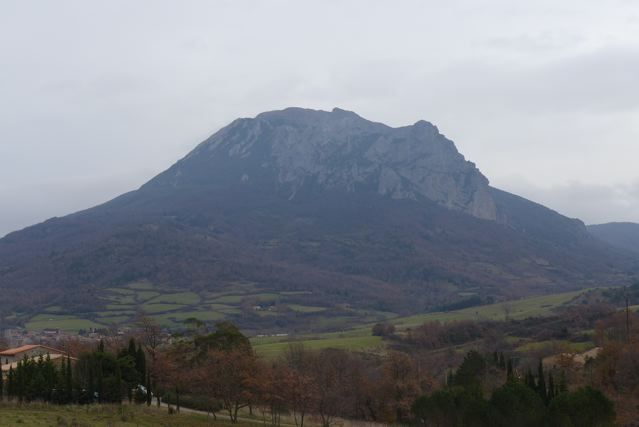 The mountain is sometimes called “The upside down mountain” or “The Mountain with its feet in the air”. Some say its is a dormant volcano. And indeed there is volcanic activity in the area. Think of the hot springs of Rennes-les-Bains. The highest top of the mountain is also called Pech de Thauze.