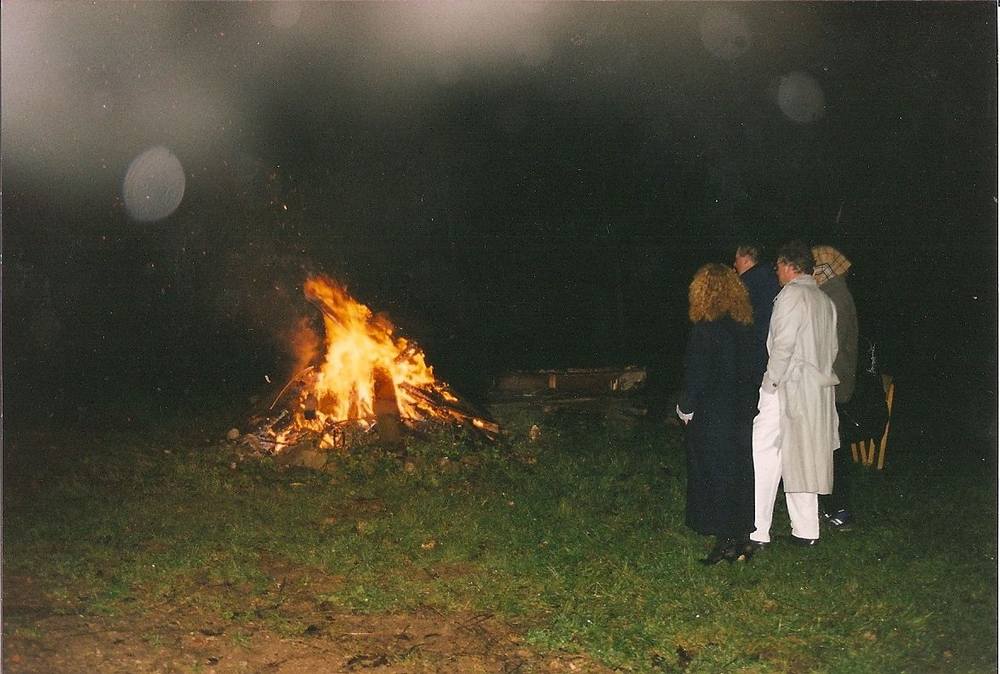 In de oudejaarsnacht van 1999 naar 2000 vierden wij op Les Labadous met een stel goede vrienden de komst van het nieuwe Millennium. Er werd een groot vreugdevuur ontstoken. Daarvan heb ik met mijn analoge camera enkele foto’s gemaakt. Waaronder deze foto waarop duidelijk enkele Orbs te zien zijn. En die waren niet het gevolg van de rook!